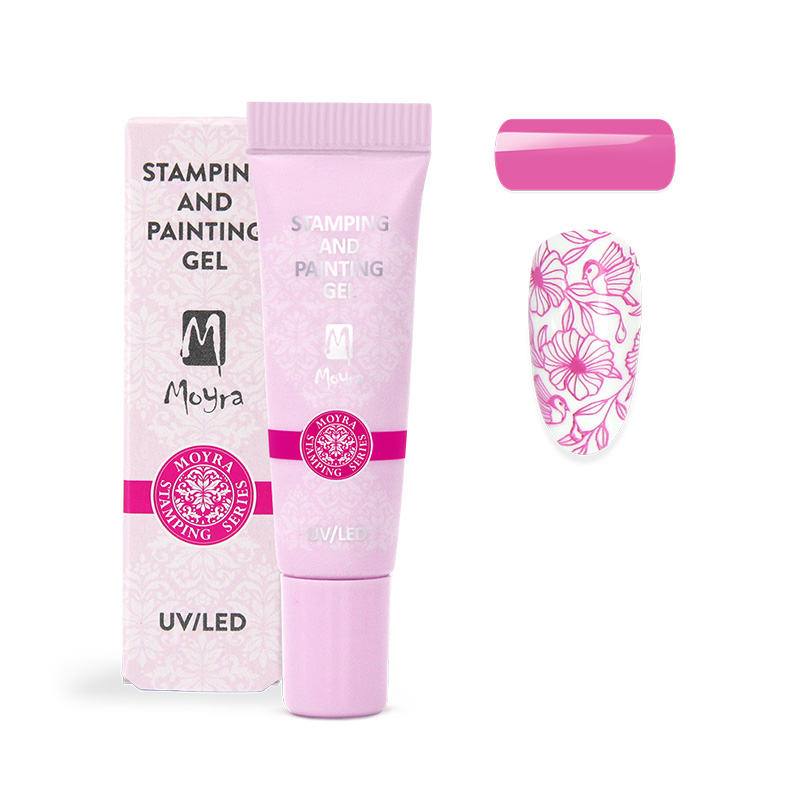 Stamping and painting gel – spojení stamping a paintingu gelu v jedinečný, bezvýpotkový UV gel v praktickém balení. Vhodný pro malbu a stínování v tenké vrstvě díky své intenzivní pigmentaci. Vynikající volba k razítkování či k vytvoření Baby boomeru.