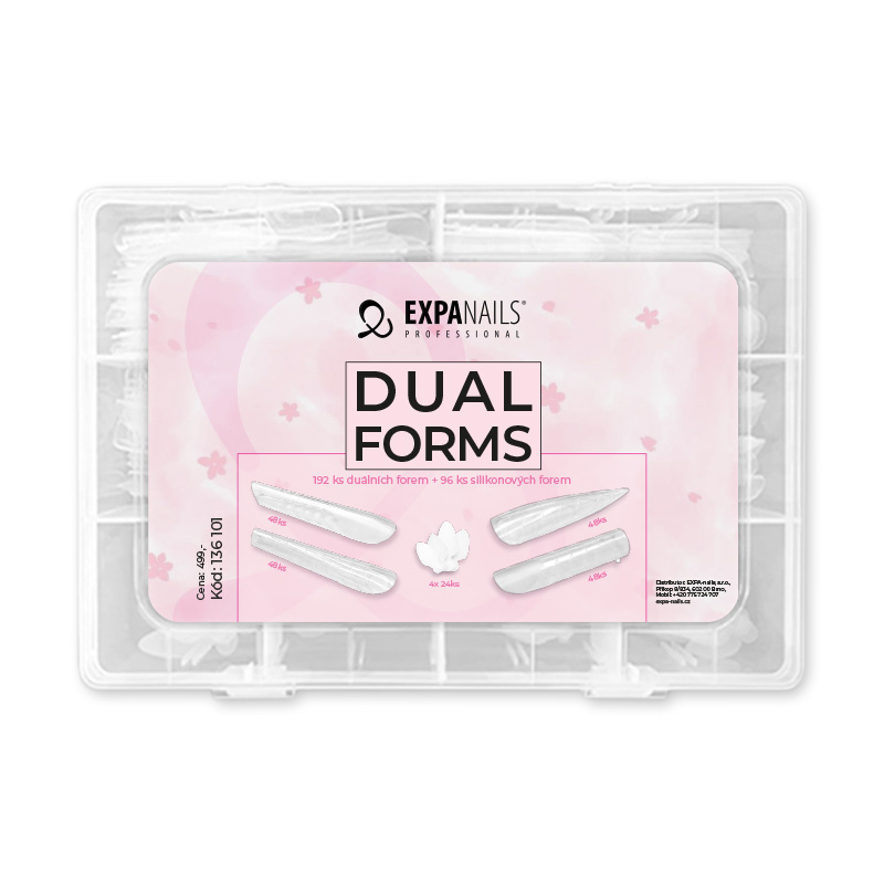 Dual forms - formičky na nehty v praktickém boxu celkem 288ks (4x48 formiček + 4x24 silikonová šablona)