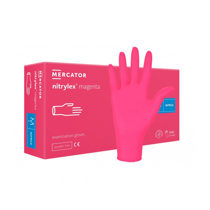 Nepudrované jednorázové rukavice MERCATOR vyrobené z nitrilu.