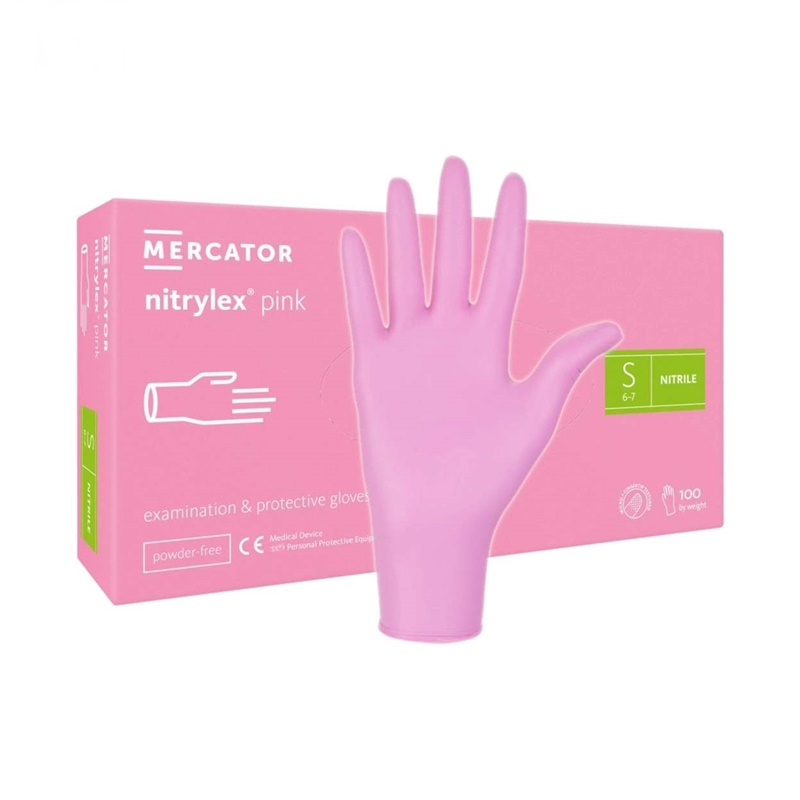 Nepudrované jednorázové rukavice MERCATOR vyrobené z nitrilu.