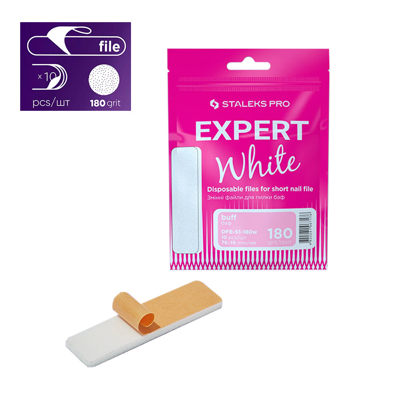 Staleks Exclusive jednorázové pilníky bílé rovné mini, s měkkou pěnovou základnou a s vysoce kvalitním brusivem pro krátký základ