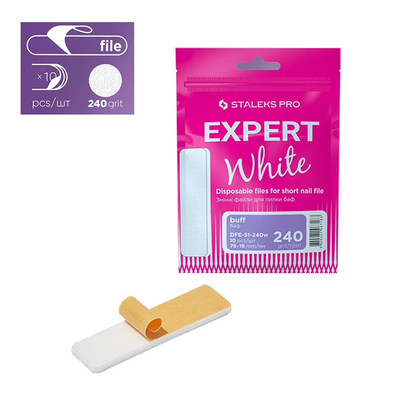 Staleks Exclusive jednorázové pilníky bílé rovné mini, s měkkou pěnovou základnou a s vysoce kvalitním brusivem pro krátký základ