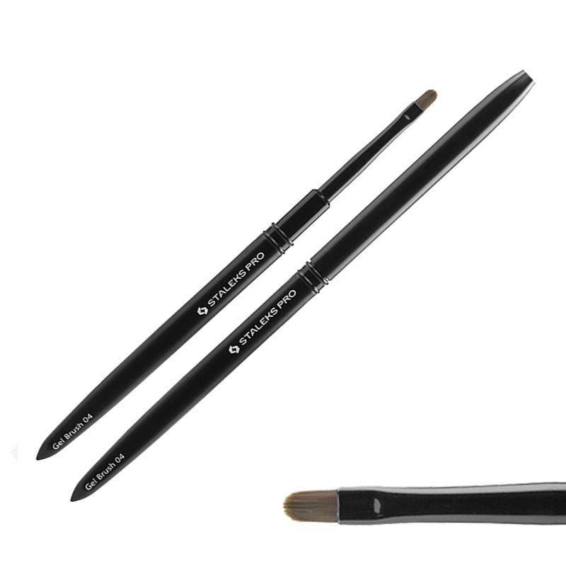 Štětec na gel - oválný tvar pro nanášení gelu, efektivní pro práci na menší plochy nehtů. Štětiny ze syntetických vláken zajišťují vynikající pružnost a odolnost a pohodlný tvar hliníkové rukojeti umožňuje snadné držení.