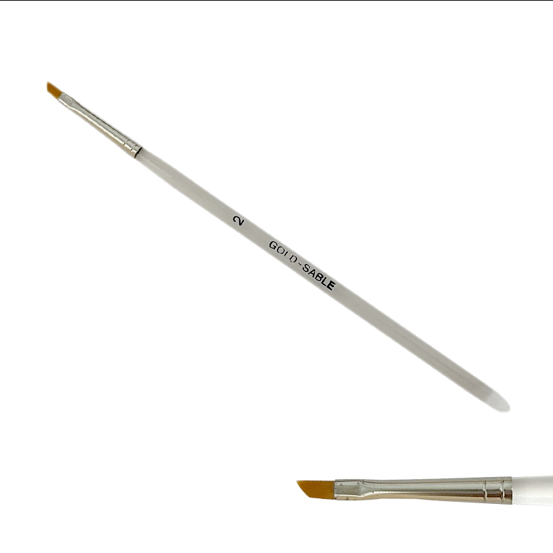Štětec na nehty Gold Sable č.2 - plochý, zkosený, načervenalý syntetický vlas - Gold Sable, bezešvá stříbrná zděř, akrylátové držátko.
