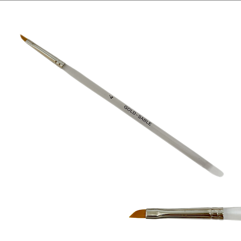 Štětec na nehty Gold Sable č.4 - plochý, zkosený, načervenalý syntetický vlas - Gold Sable, bezešvá stříbrná zděř, akrylátové držátko.