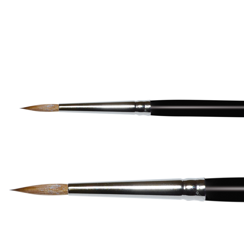 ŠTĚTEC č.6 - kulatý, špičatý, vhodný na gel i akryl, bezešvá stříbrná zděř, černě lakované držátko, vlas Kolinsky-Rotmarder.