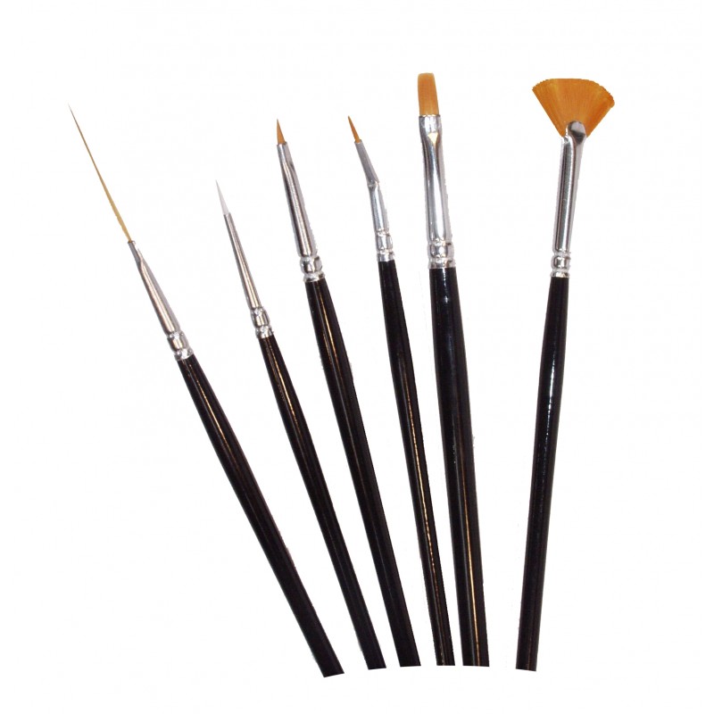 Štětec na nehty Gold Sable - v 6dílné sadě, načervenalý syntetický vlas - Gold Sable, bezešvá stříbrná zděř, leské černé lakované držátko.