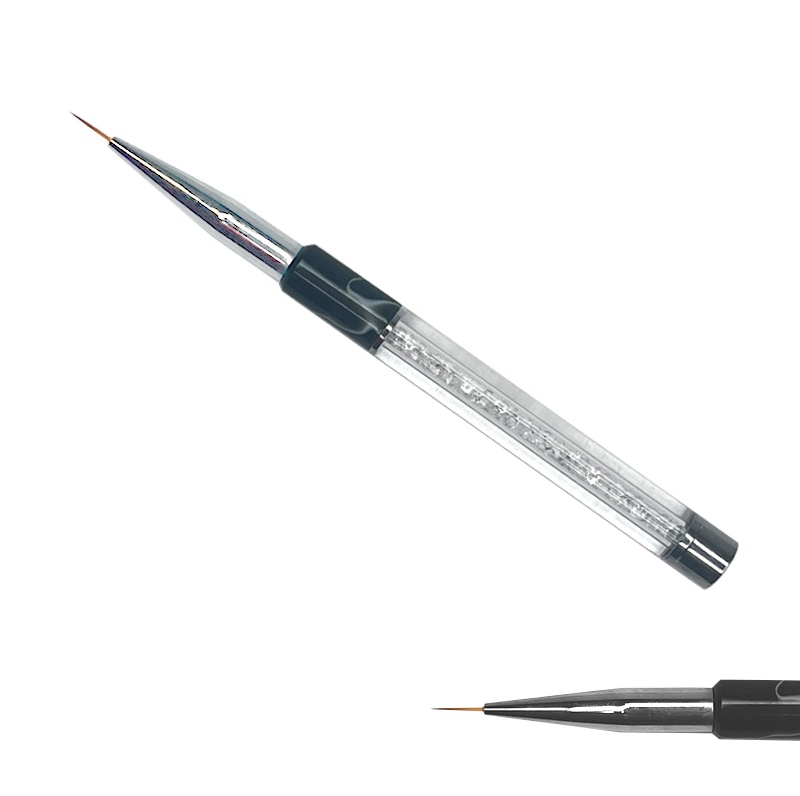 Zdobící štětec s extra tenkým chlupem pro Nail Art - délka chlupu 9 mm, rukojeť je ozdobena kamínky.