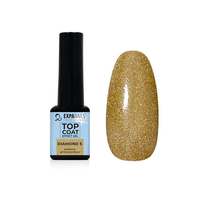 Závěrečný bezvýpotkový lesk, čirý se zlatým třpytem, který je velmi pružný a efektový lesk a obsahuje reflexní prvky. Oživí každou barvu a vytvoří na povrchu barevného gelu krásný třpytivý efekt. Lze použít na všechny druhy gel laku, gelu, akrylu nebo polygelu.