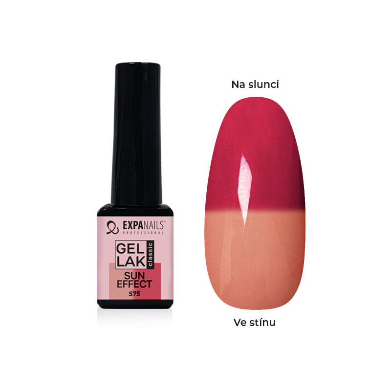 Gel lak SUN effect mění barvu celoplošně na sluníčku.