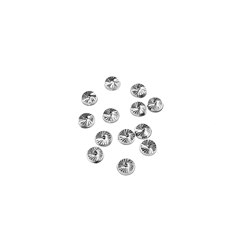 Kovové ozdoby broušené v barvě stříbrné. Nahrazují kamínky a lze s nimi vytvořit krásné zdobení na nehtech dle vlastní fantazie.